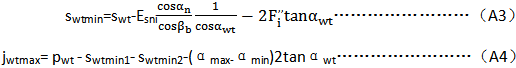 最大的理論側(cè)隙也可發(fā)生于當(dāng)兩個齒輪都按最小實效齒厚swtmin制成,且運行于最松中心距條件下碰在一起時。在實踐中,那種情況不大可能發(fā)生。