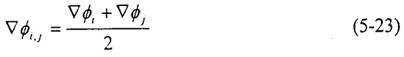 的計(jì)算主要是求出控制面上相關(guān)物理量的梯度值。首先由(5-19)式求出各單元內(nèi)物理量ф的梯度值后,界面(i,j)上物理量的梯度值可簡(jiǎn)單地由相鄰單元內(nèi)物理量ф的梯度值的算術(shù)平均得出:
