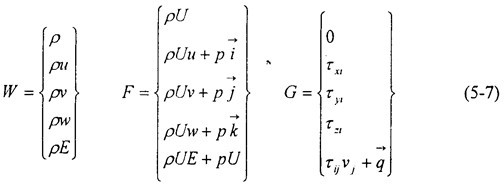 Ω是控制體邊界面,W是求解變量,F(xiàn)是無(wú)粘通量,G是粘性通量。