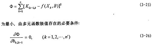 已知K2i-1 (A)是關(guān)于自變量X=[A,A2,…An1]T和待定參數(shù)B=[ b0,2i-1,b1,2i-1,…,bn′,2i-1]T的形式已知的函數(shù)(3-13),簡(jiǎn)寫(xiě)成: