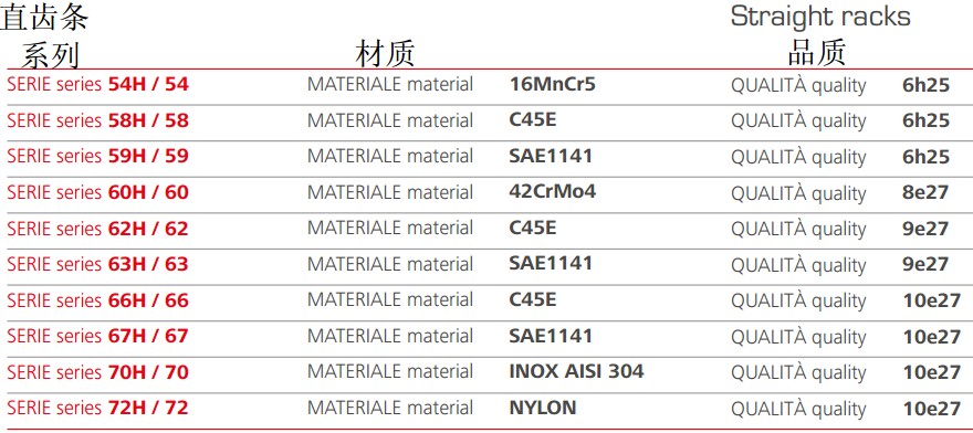 Gambini可使用不同類型的原材料生產(chǎn)高精度的直齒條和斜齒條。我們生產(chǎn)的齒條模數(shù)范圍為0.5到30,品質(zhì)等級范圍為5到10。品質(zhì)等級為5的齒條最大長度為1000mm,如果品質(zhì)等級為6,可生產(chǎn)的單件長度可達2000mm.