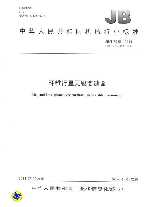 環(huán)錐行星無級變速器(JB/T7010-2014)
